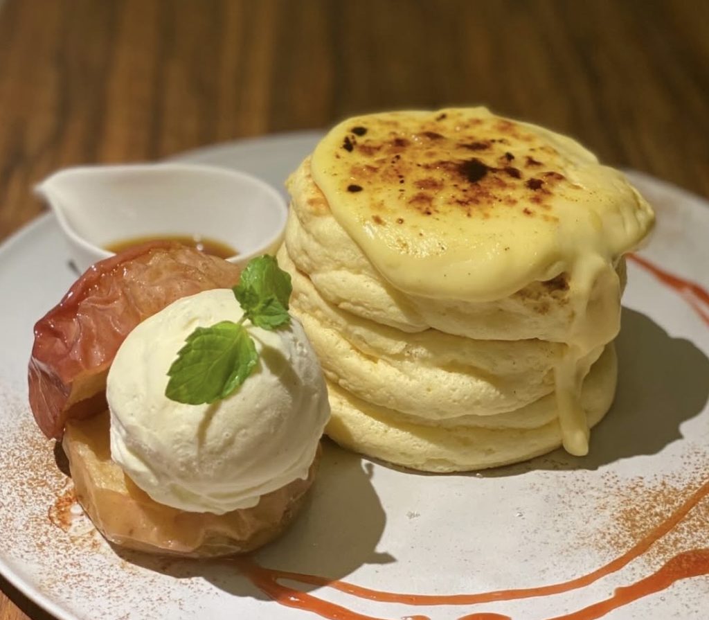 《焼きりんごと自家製カスタードのブリュレパンケーキ〜紅茶のカラメルソース添え〜》