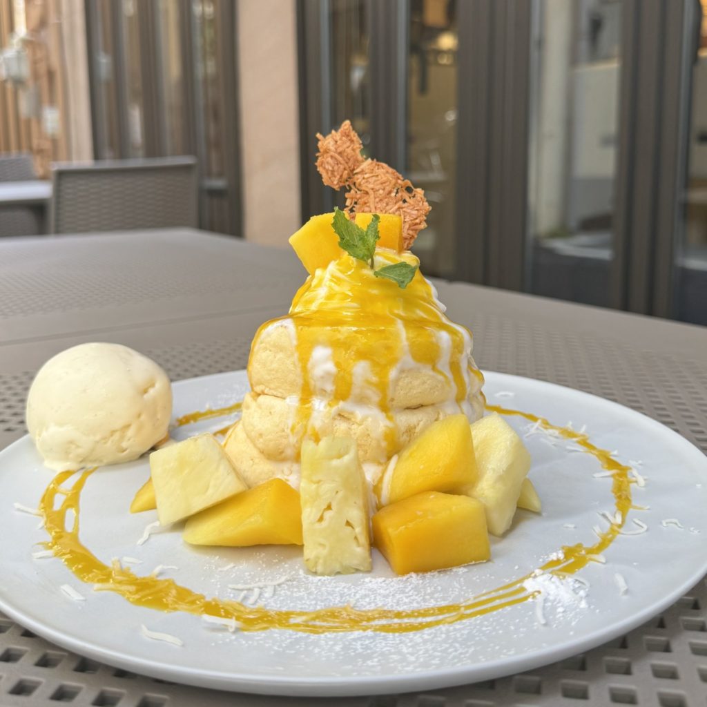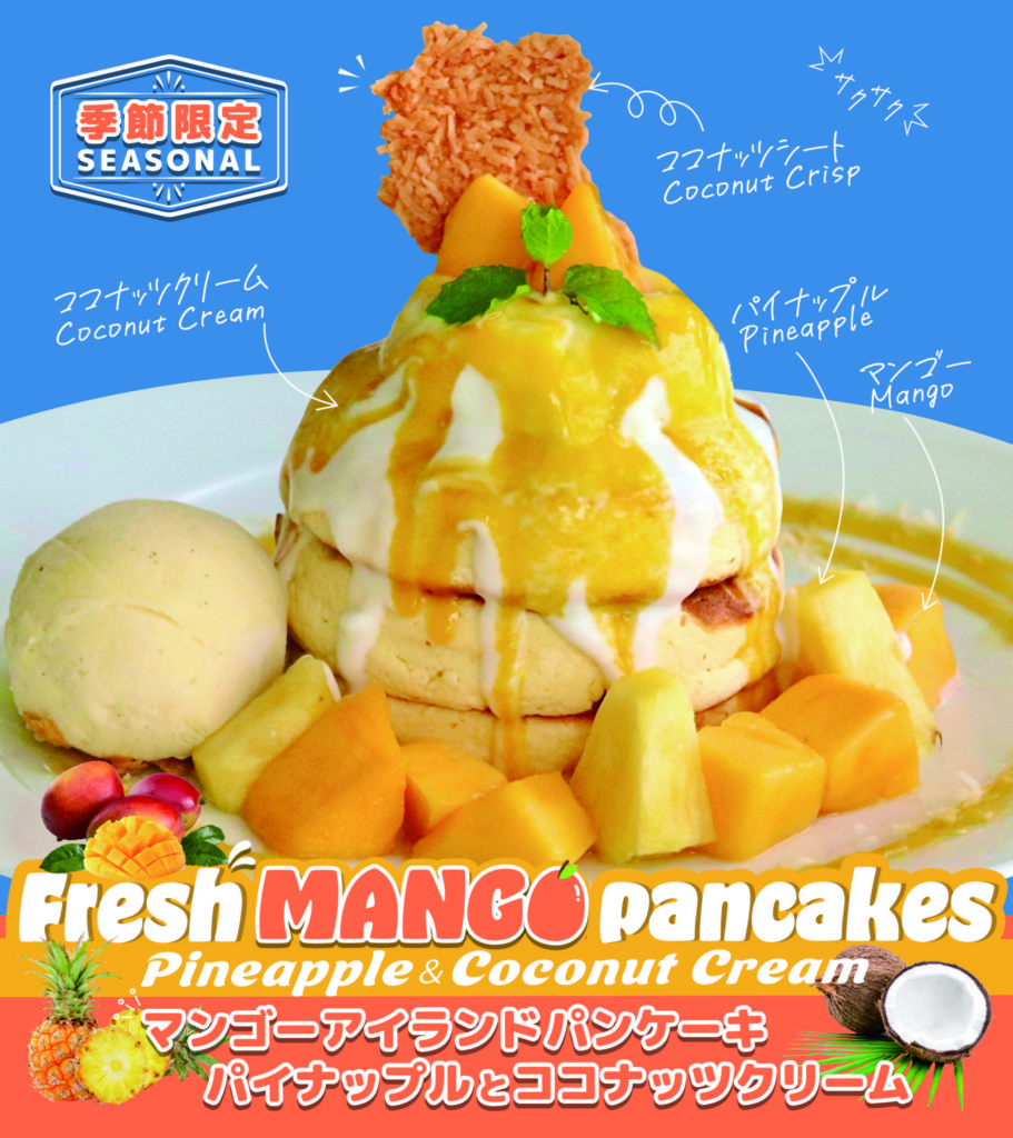Our summer-exclusive “Mango Island Pancakes ~ with Pineapple and Coconut Cream” are now available at our Ginza location too!
