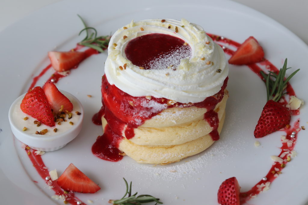 Enjoy fluffy, freshly baked pancakes topped with the sweet and tart flavors of seasonal berries,