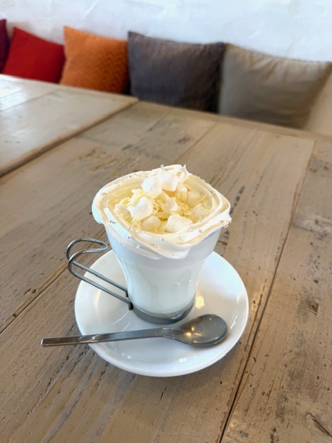 A smooth and creamy white cocoa with a gentle hint of vanilla added to white mocha.