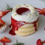 A mille-feuille style pancake with Okinawan purple yam cream, homemade custard, and fresh cream.
